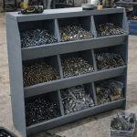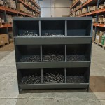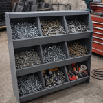 INDUSTRIAL DESIGN: Sturdy metal construction with angled open-front bins provides quick visibility and access to hardware components, ideal for busy garage and warehouse environments