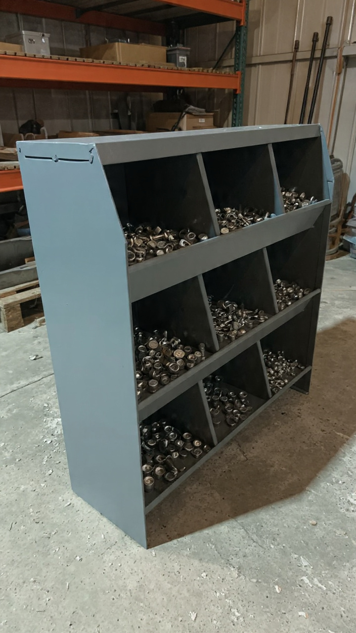 Pigeon Hole RacksORGANISED STORAGE: 9-compartment metal bin storage rack designed to keep nuts, bolts, screws, washers, and small tools systematically organised and easily accessible in your workspace