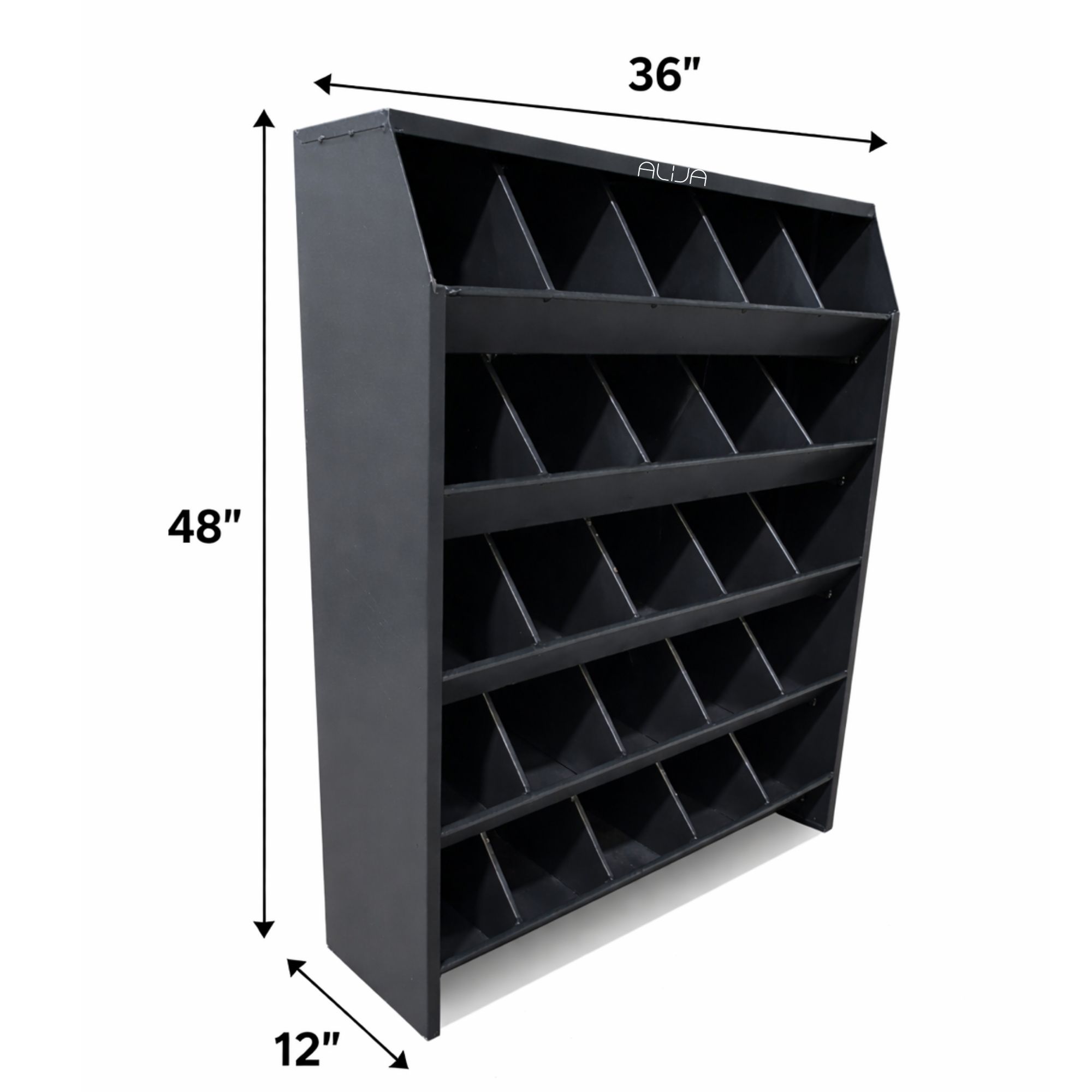 Pigeon Hole RacksTransform your cluttered workspace into an organised haven with the ALIJA Swiftlet Metal Storage Organiser. This robust dark grey storage solution features 25 individual compartments designed to keep your hardware, tools, and small parts perfectly sorted and easily accessible. Whether you're a professional mechanic, DIY enthusiast, or workshop owner, this bin rack system eliminates the frustration of searching through jumbled drawers and containers. The angled compartments provide excellent visibility and quick access to screws, bolts, nuts, washers, wire connectors, and various hand tools. Constructed from durable metal, this organiser is built to withstand the demanding environment of garages and workshops whilst maintaining its structural integrity. The spacious compartments accommodate items of varying sizes, from delicate electrical components to larger wrenches and pliers. Its freestanding design requires no wall mounting, allowing you to position it wherever it's most convenient in your workspace. The sleek dark grey finish complements any garage or workshop décor whilst hiding minor scuffs and marks. Say goodbye to wasted time hunting for the right fastener or tool—with everything neatly categorised and visible at a glance, you'll work more efficiently and professionally. Perfect for automotive repair shops, home garages, manufacturing facilities, or any space where organisation matters.