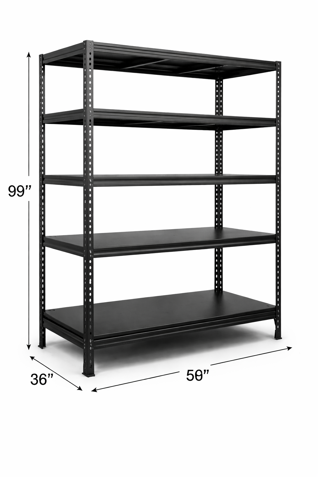 0 review(s) for "Heavy Duty Storage Rack, Black, 5-Tier Shelving Unit, 99" H x 58" W x 36" D, Metal Construction Powder Coated"