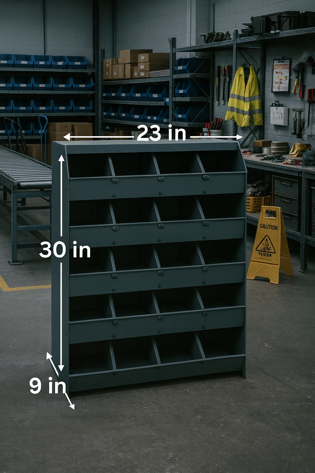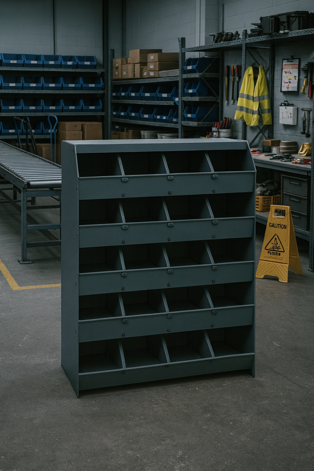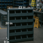Pigeon Hole RacksTransform your warehouse, workshop, or storage space with this robust 5-tier metal shelving unit. The black steel construction offers exceptional durability and stability for industrial-grade storage solutions. Each tier features multiple compartments, maximising organisation efficiency while maintaining easy access to stored items. The thoughtfully engineered design includes reinforced supports and sturdy construction that makes it ideal for heavy-duty storage needs. Perfect for warehouses, workshops, stockrooms, or any space requiring systematic organisation of inventory and supplies. The gray finish not only adds a professional appearance but also provides resistance against daily wear and tear. Assembly is straightforward, allowing you to quickly set up and start organising your space. The versatile compartment configuration helps keep items sorted and easily accessible, improving workflow efficiency in any industrial setting.